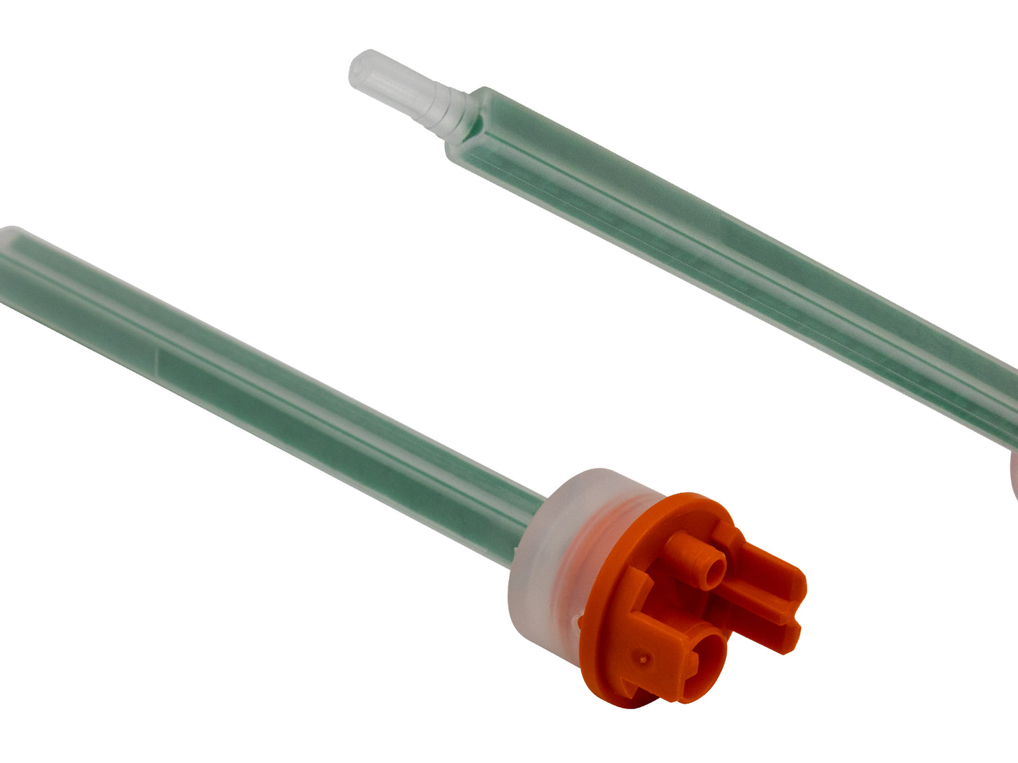 - Statikmischer QUADRO (MIXPAC™) MFQX (grüne Elemente / oranger Bajonettanschluss) für Mischungsverhältnis 4:1 und 10:1